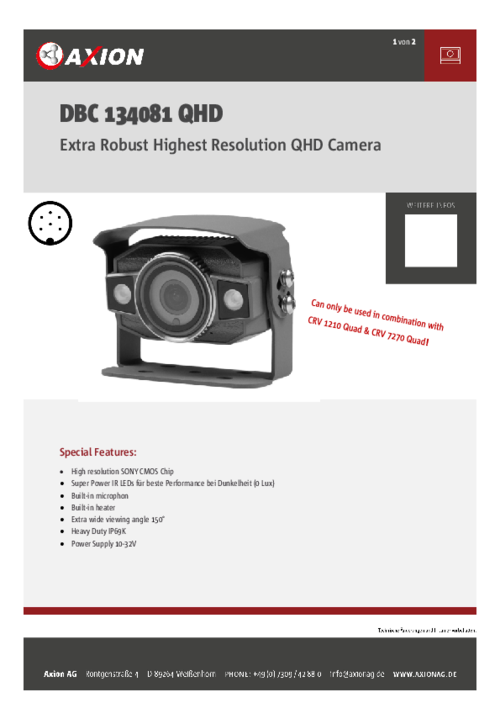 - DBC 134081 QHD can only be used in combination with CRV 1210Quad & CRV 7270 Quad