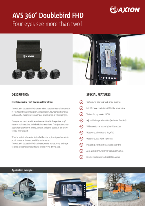 The latest generation of the AXION around view system expands the capabilities of previous Doublebird solutions to provide an even clearer representation of the vehicle's surroundings.